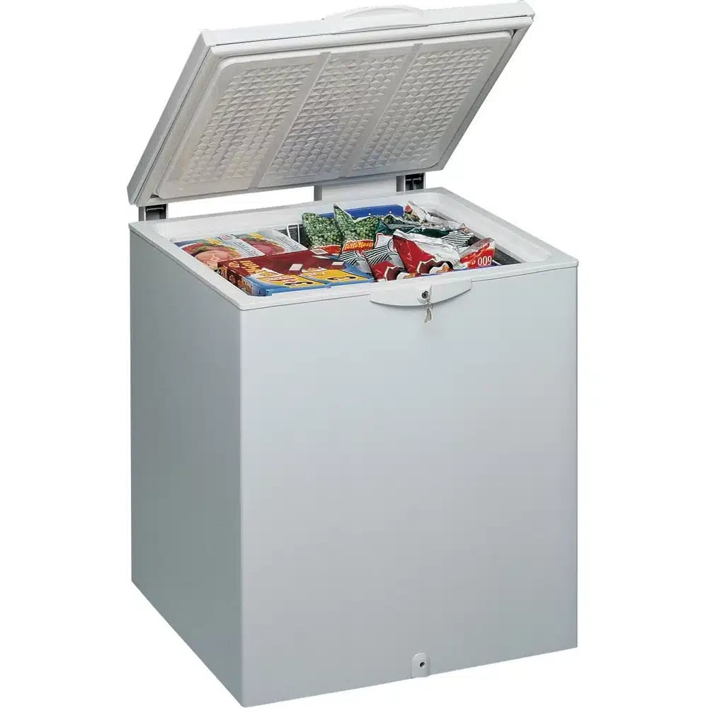 Le congélateur horizontal Whirlpool CF28 blanc a une capacité de stockage de 245L et d’un panier de rangement.