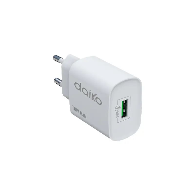 Détails du produit : Fast charger Blanc USB A 18W Daiko – FCW-20WUSBA