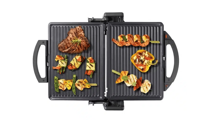 Grillez à votre guise : avec la commande de température ajustable en permanence, il vous suffit de sélectionner la température idéale pour chaque plat. Les aliments sont cuits à la température idéale des deux côtés pour des résultats exceptionnels. Les steaks, par exemple, peuvent être grillés à la perfection, saisis à l’extérieur et toujours saignants à l’intérieur. Rapidement, simplement et sans aucune éclaboussure de graisse.