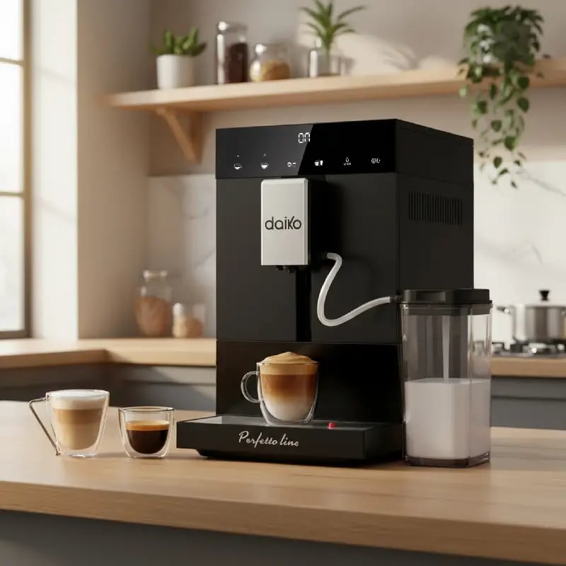 Detail De Machine à café Daiko CFAC8593EK automatique Digitale Cappuccino 19 bars Noir avec réservoir à lait