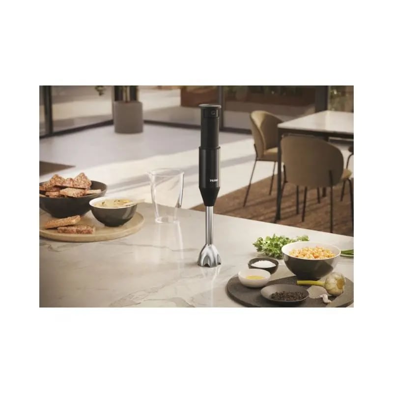 Mixeur plongeant HAIER I-Master Série 5 noir HHB5B2 011un appareil de cuisine pratique et élégant, conçu pour mixer rapidement et facilement. Avec son moteur puissant et sa forme confortable, il est parfait pour préparer des soupes, des sauces, des smoothies, des purées et bien d’autres recettes.
