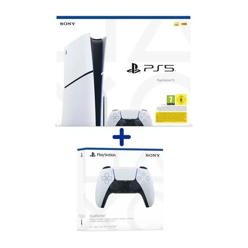 Details de Pack PS5 Standard : Console PS5 (Modèle Slim) + 2ème Manette sans fil PS5 DualSense Blanche :