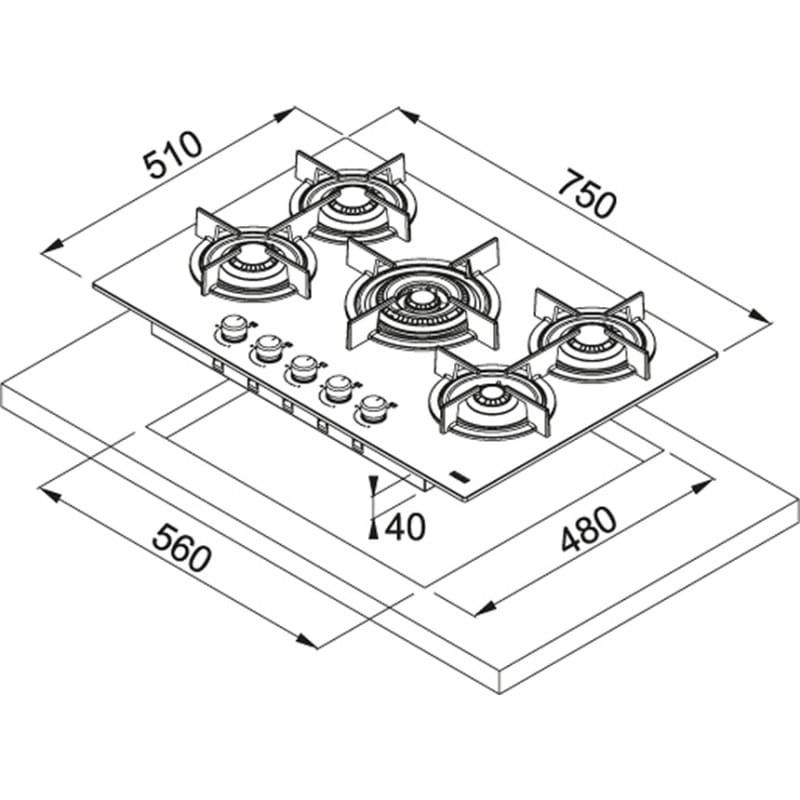 | Installation | Encastrable, découpe recommandée : 560 × 480 mm |
