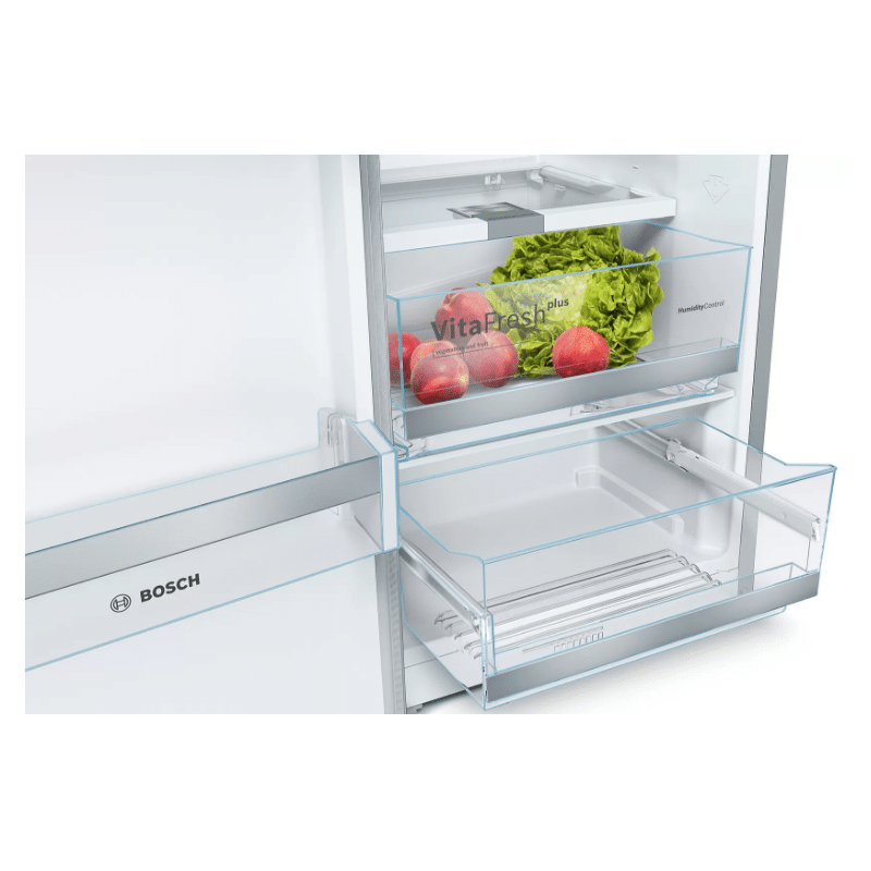 Le réfrigérateur Bosch KSV36BI3M8 est équipé d’un compartiment VitaFresh qui permet de conserver les fruits et légumes frais jusqu’à deux fois plus longtemps grâce à un taux d’humidité optimal.