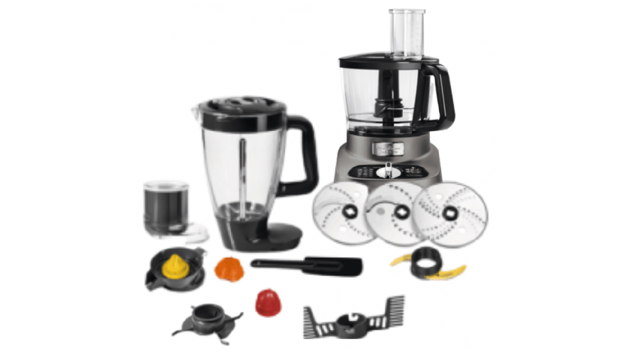 - VitesseAccessoires Fournis: Lame en inox / disques réversibles pour trancher/râper fin et épais / disque émulsionner / bol blender / pétrin / mini-hachoir / boîte de rangement