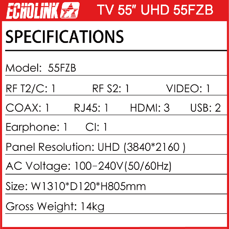 Tv ECHOLINK 55″ 55FZB UHD SMART TV